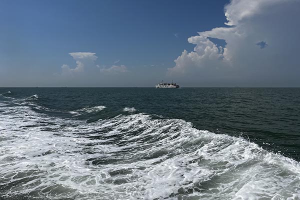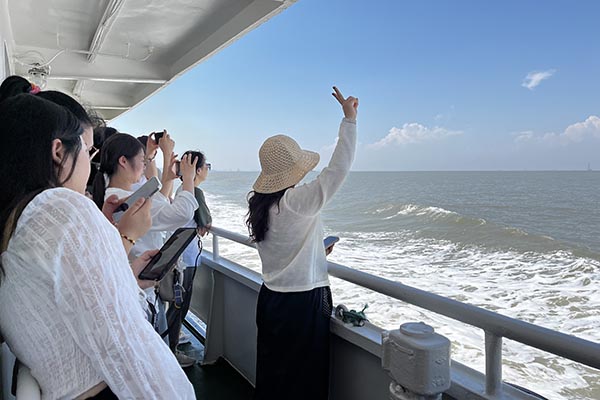 在清晨七點半的晨光中,滿載歡聲笑語的大巴,如同一艘陸地航船,載著我們駛向那片心心念念的蔚藍。一路上的談天說地,讓四個小時的車程變得輕快。當咸腥的海風透過車窗拂面而來,我們便知,目的地近了。沈家灣碼頭人頭攢動,我們的興奮之情也隨著海浪輕輕蕩漾。登上游輪,劈波斬浪,船艙內是同事們不絕于耳的驚嘆與快門聲。那一刻,所有工作的疲憊仿佛都被海風吹散,拋在了身后。